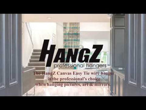 HangZ™ 50lb Easy Tie 2 Hole D ring Kit (50 set) The HangZ™ patented design elimanates the need to tie wire the old fashion way. No more unsightly hardware exposed. Wire will never slip or untie. Keeps hands clean and protects fingers from injury. Never see the hook again. Ideal Canvas & open back frames.