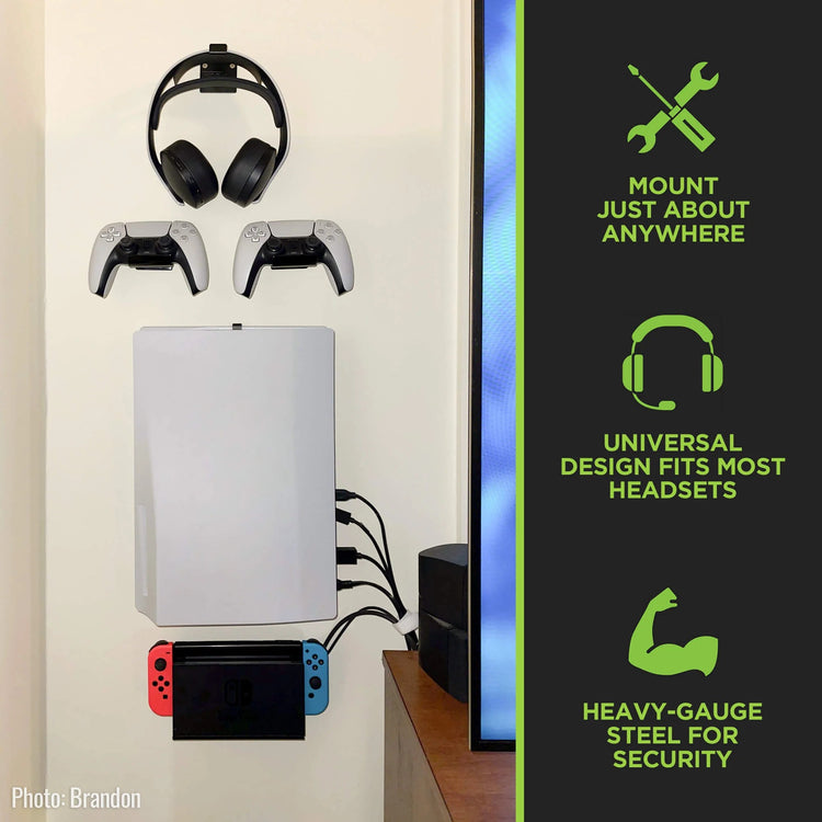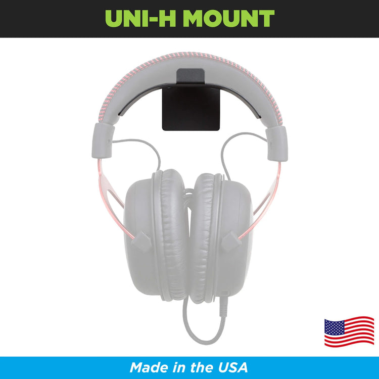 The Uni-H is the headphone mount you’ve been searching for! Its time to ditch the headphone stand and take advantage of unused wall space with the Uni-H Wall Mount. Mount your headsets to keep them safe from damage and accidents. With the provided drywall anchors, you can feel confident that your favorite gaming headsets or pair of headphones aren’t going anywhere! Mount your headphones today for a sleek and organized setup! Don’t have a pair of headphones you’re looking to mount? No worries, the Uni-H is universal and compatible with a variety of other headwear including sports helmets and hats!